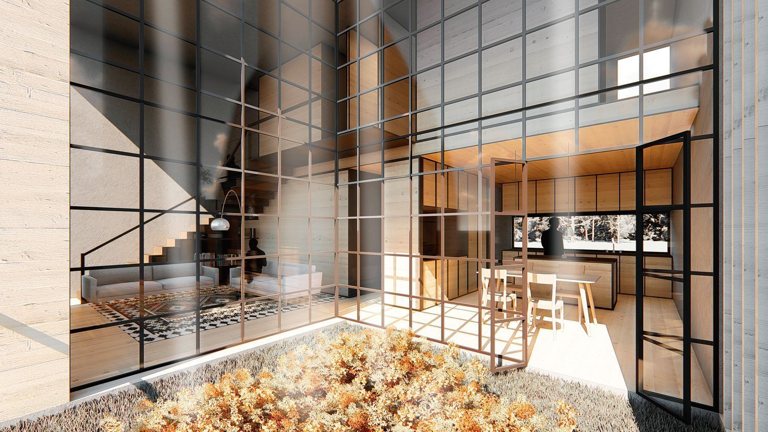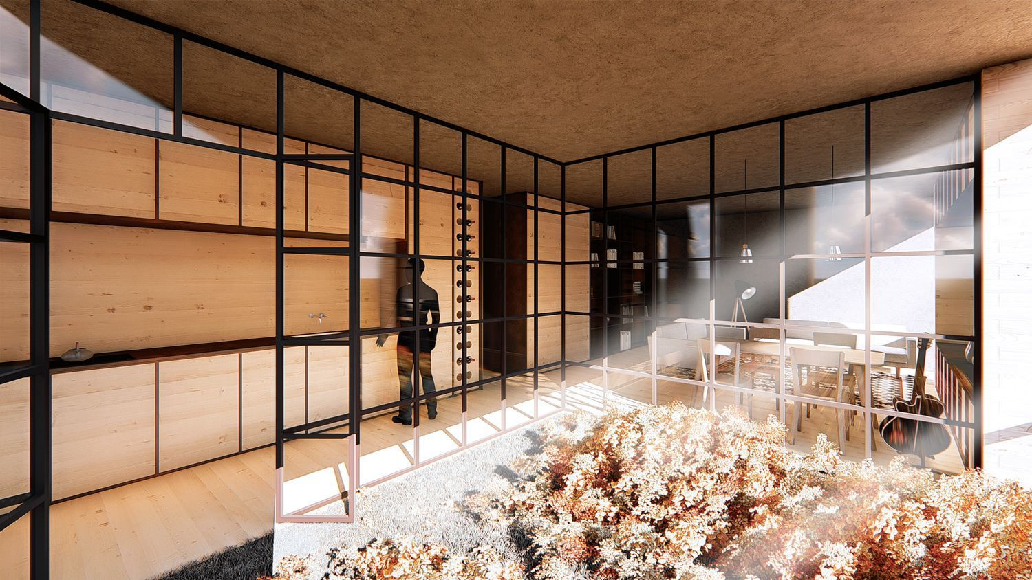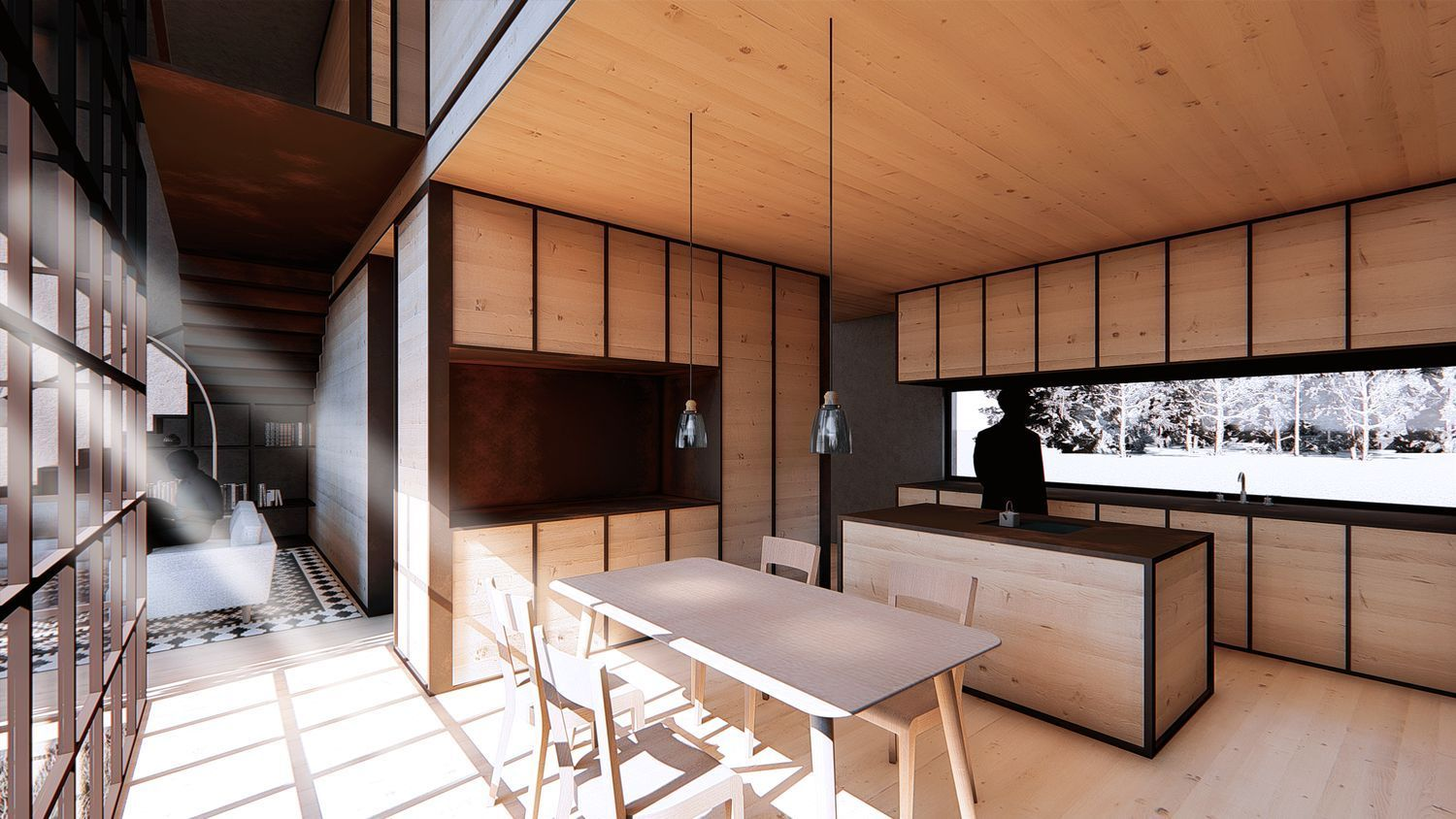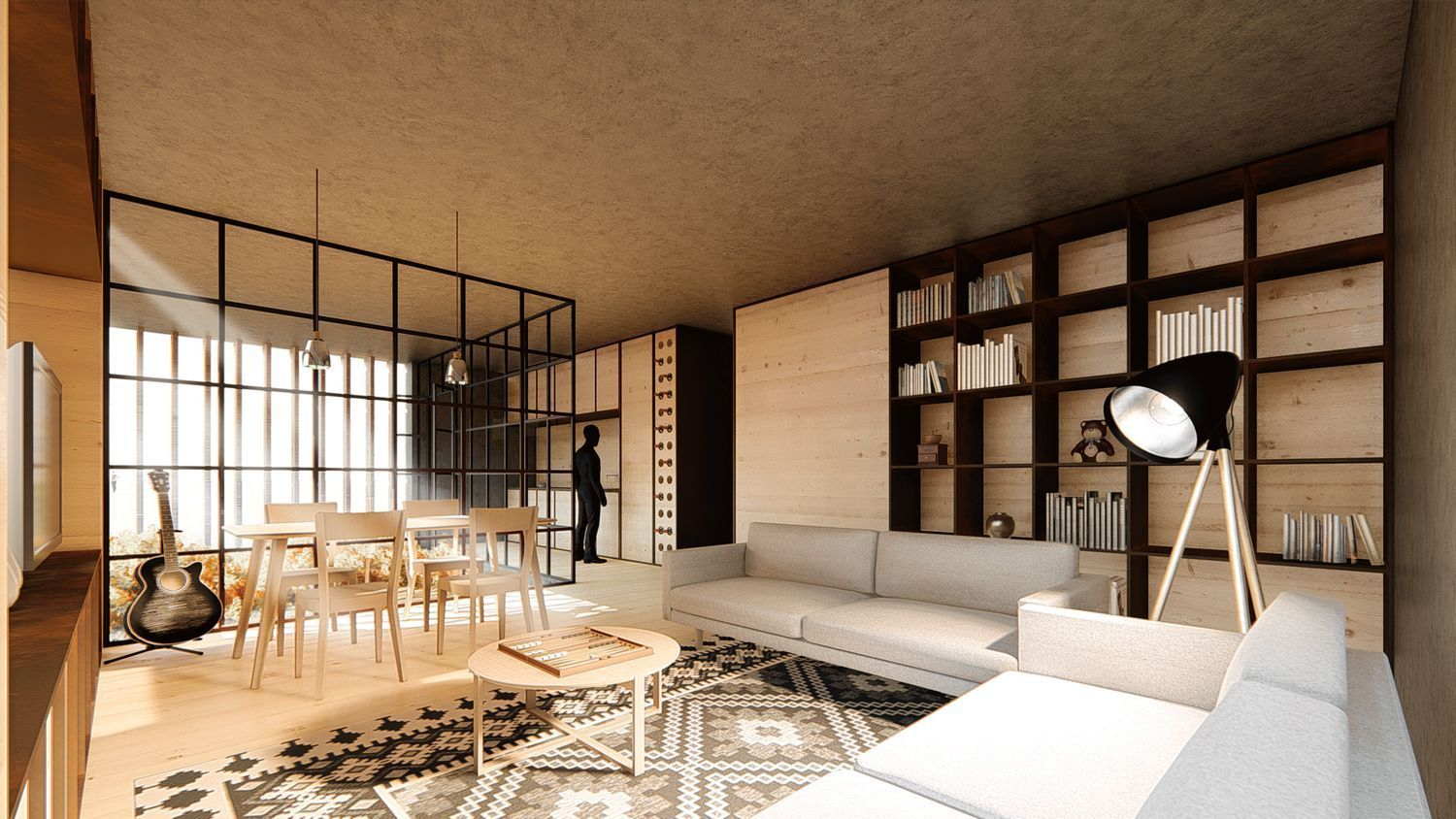 Técnica de construcción en seco y prefabricada, realizada íntegramente en madera y materiales sostenibles.