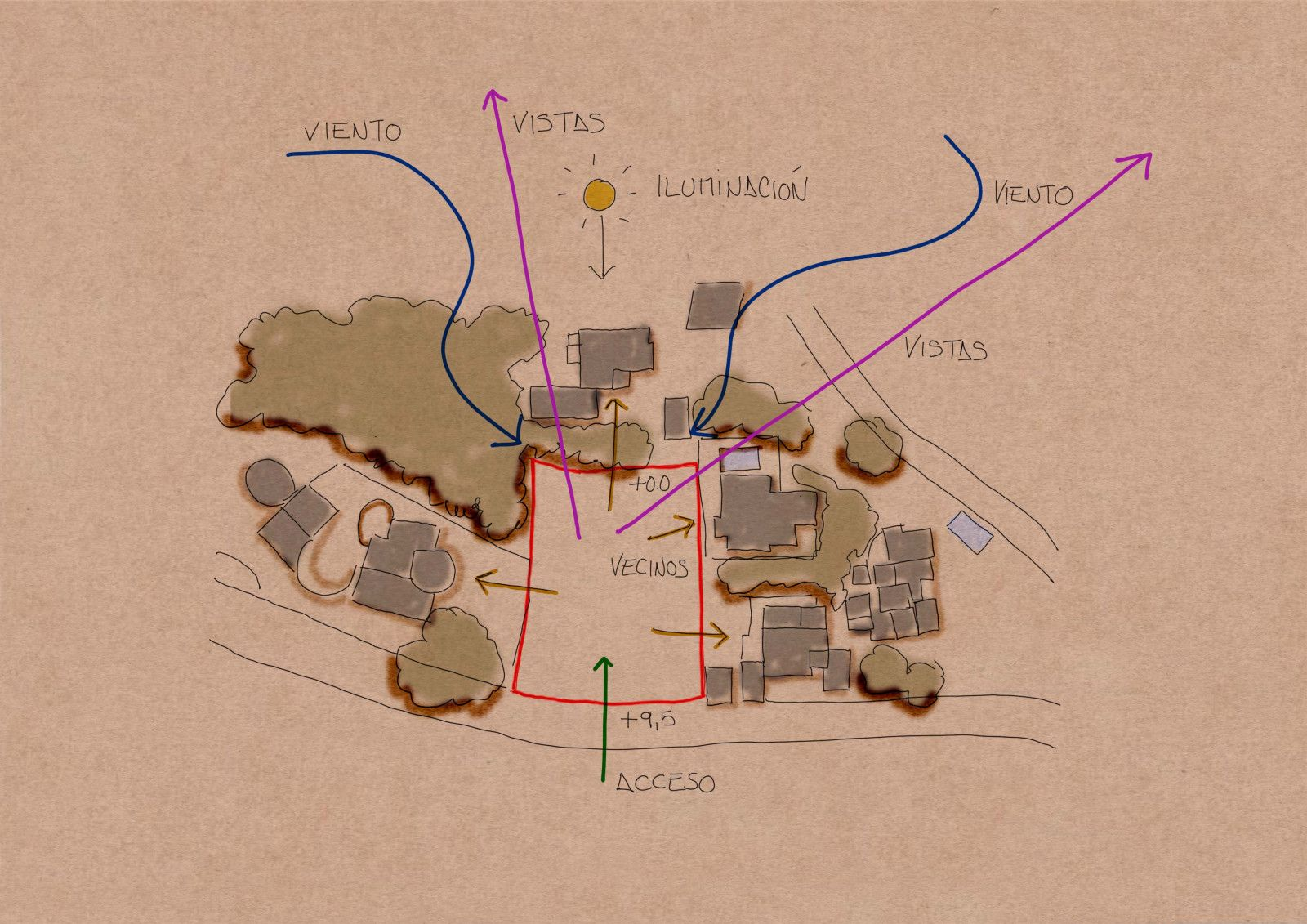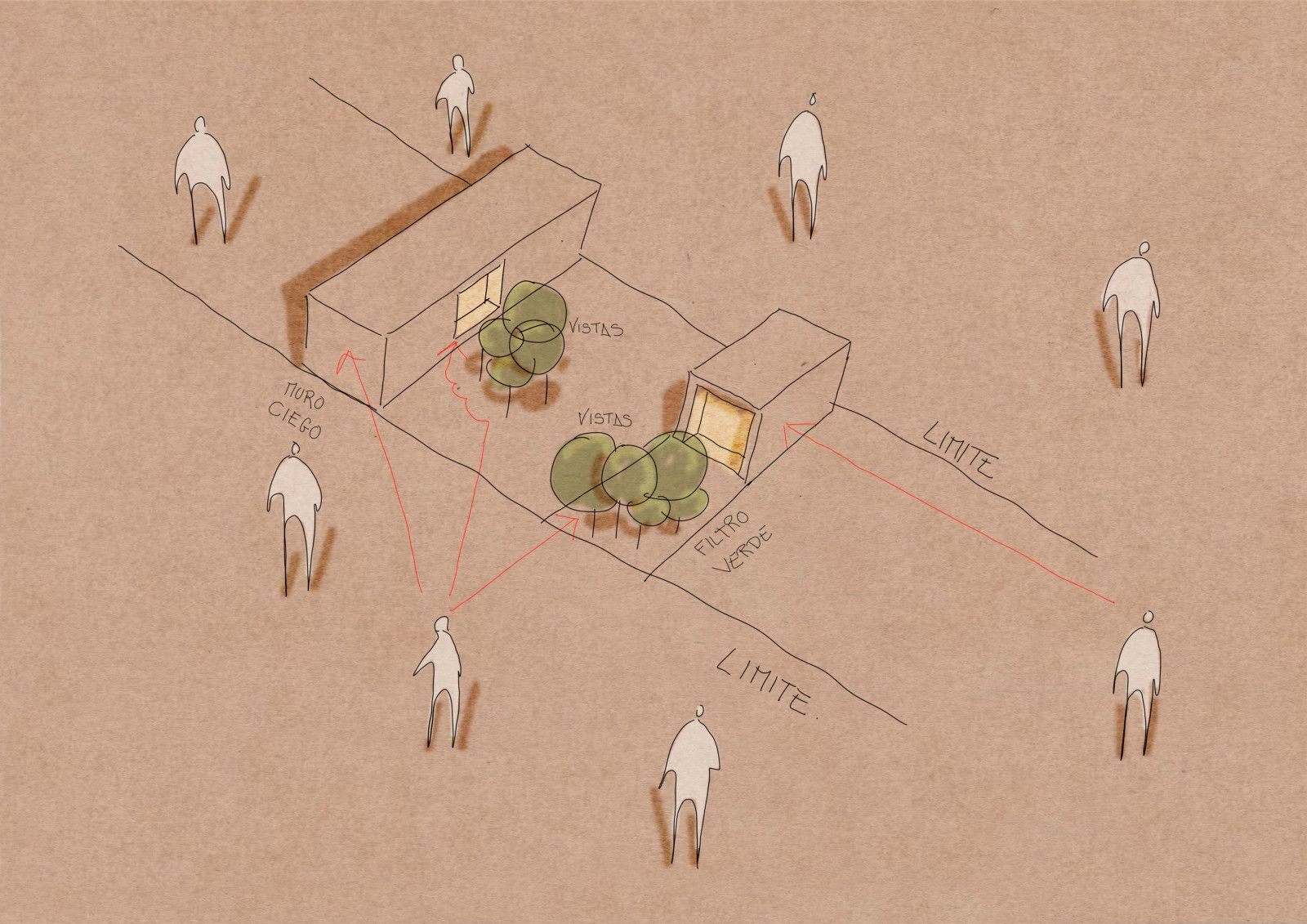 Una parcela rodeada, enclaustrada, que necesita respirar. El vacío hace al lleno, lo natural a lo construido.