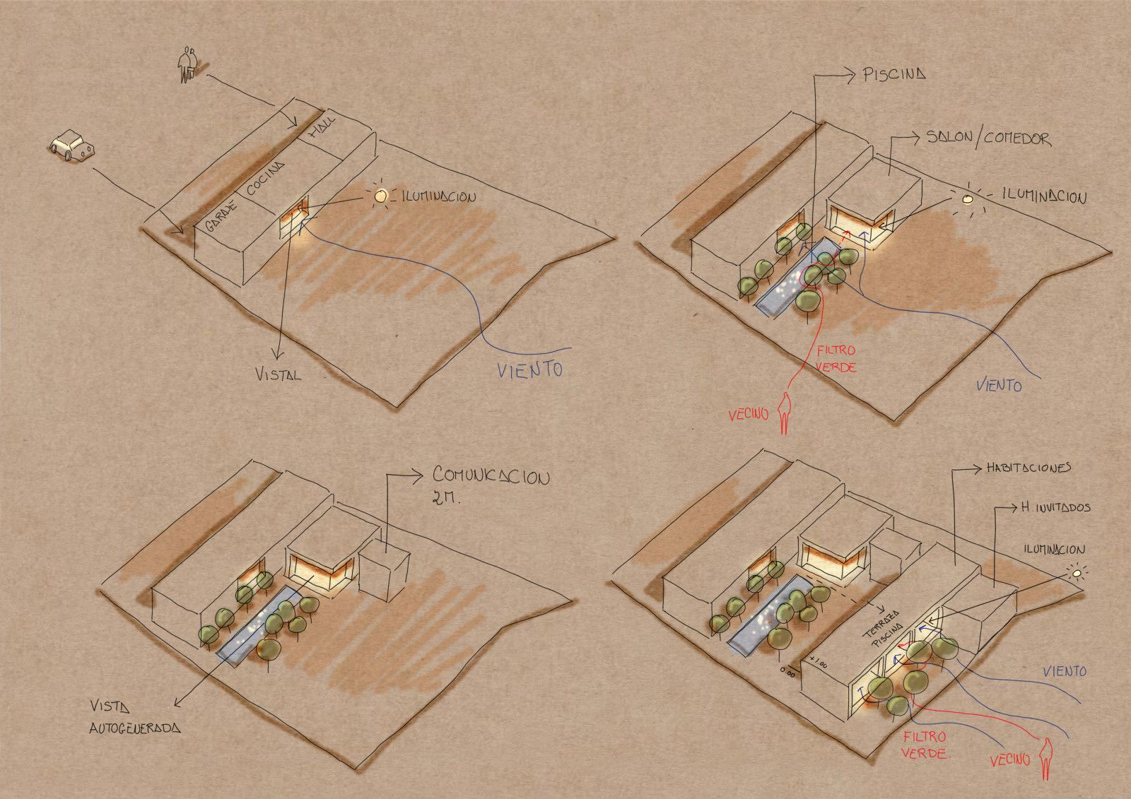 Damos un espacio propio al concept design. No hay dos proyectos iguales: estudiamos luz, viento, vegetación, topografía, preexistencias y accesos. Buscamos el equilibrio entre lo nuevo y lo existente para definir una idea clara que guíe todo el proyecto.